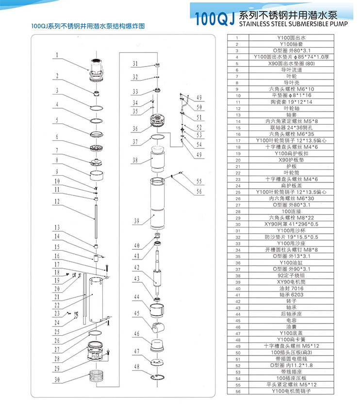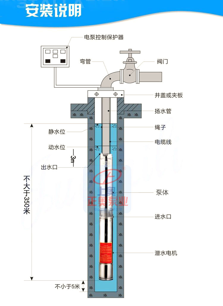 (4)熟悉安裝使用說(shuō)明書(shū),對(duì)新鉆的水井必須進(jìn)行洗井,清除水中泥砂后,方能安裝QJ型潛水電泵。