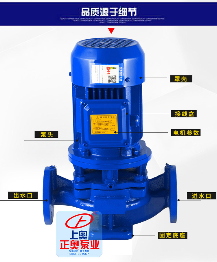 1、立式管道離心泵結構緊湊、體積小、外形美觀,其結構決定安裝占地面積小,如加上防護罩可置于戶外使用。