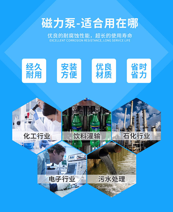 不銹鋼磁力泵結構緊湊、外形美觀、體積小、噪音低、運行可靠、使用維修方便?蓮V泛應用于化工、制藥、石油、電鍍、食品、電-影照相洗印、科研機構、國防工業(yè)等單位抽送酸、堿液、油類、稀有貴重液、毒液、揮發(fā)性液體,以及循環(huán)水設備配套、過濾機配套。特別是漏、易燃、易爆液體的抽送,選用此泵則更為理想。