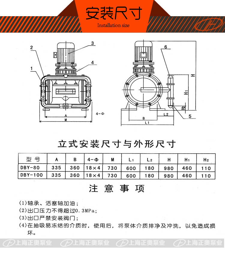 DBY系列電動隔膜泵是一種新型的泵類,近年來,在隔膜材質(zhì)上取得了突破性的進展。本泵應用于石化、陶瓷、冶金等行業(yè),這種泵的主要特點是不需灌引水、自吸能力達7米以上。直徑在10毫米以下的顆粒、泥漿等均可以毫不費力地通過。由于隔膜將被輸送介質(zhì)和傳動機械件分開,所以介質(zhì)不會向外泄漏,且泵本身無軸封,使用壽命大大延長。根據(jù)不同介質(zhì),隔膜分為氯醇橡膠、氟橡膠、丁晴橡膠等,完全可以滿足不同用戶的要求。