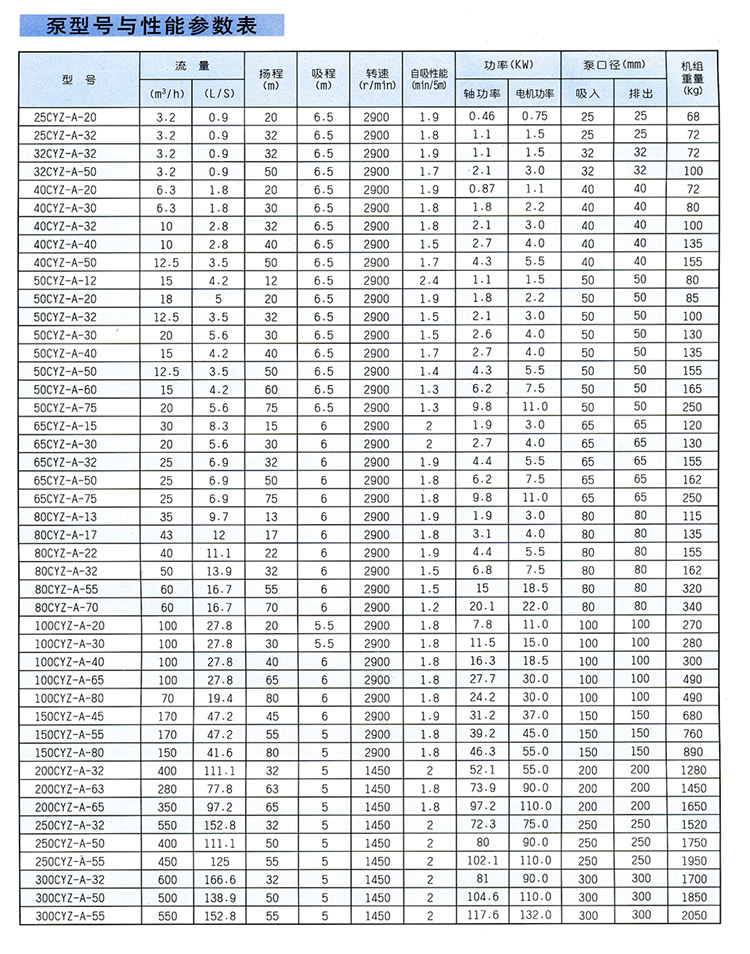 CYZ-A型軸聯式自吸油泵該自吸泵適用于石油行業、陸地油庫、油罐車的理想產品,并適合于作船用貨油泵、艙底 泵、消防泵和壓載泵及機器冷卻水循環等,分別輸送汽油、煤油、柴油、航煤等石油產品和海水、清水,介質溫度-20℃-80℃,如輸送化工液體可改用耐腐蝕 機械密封。