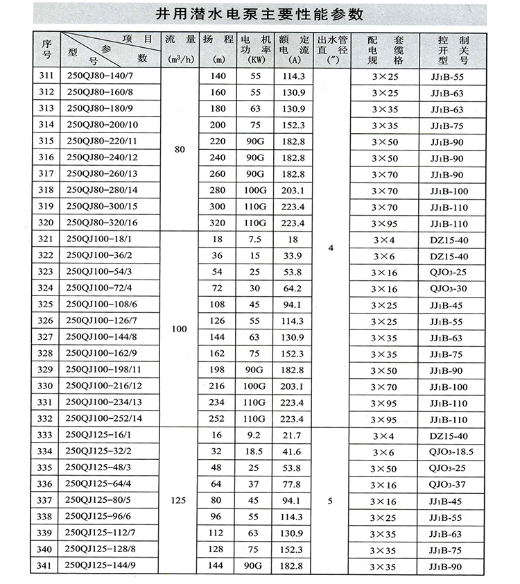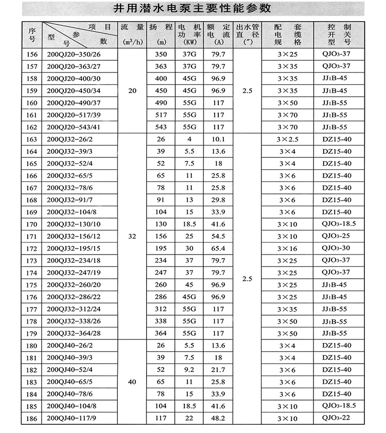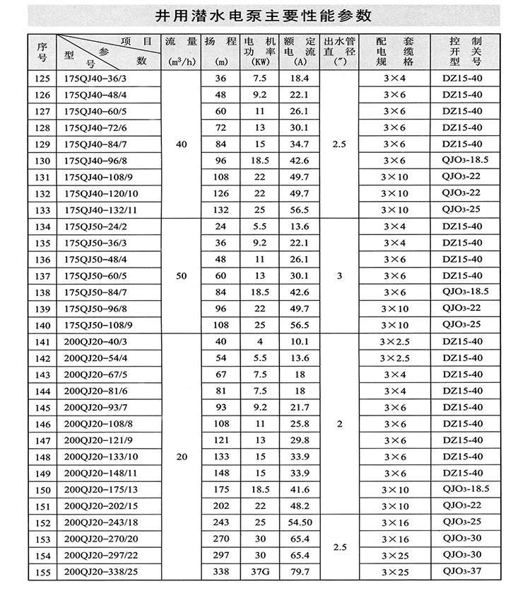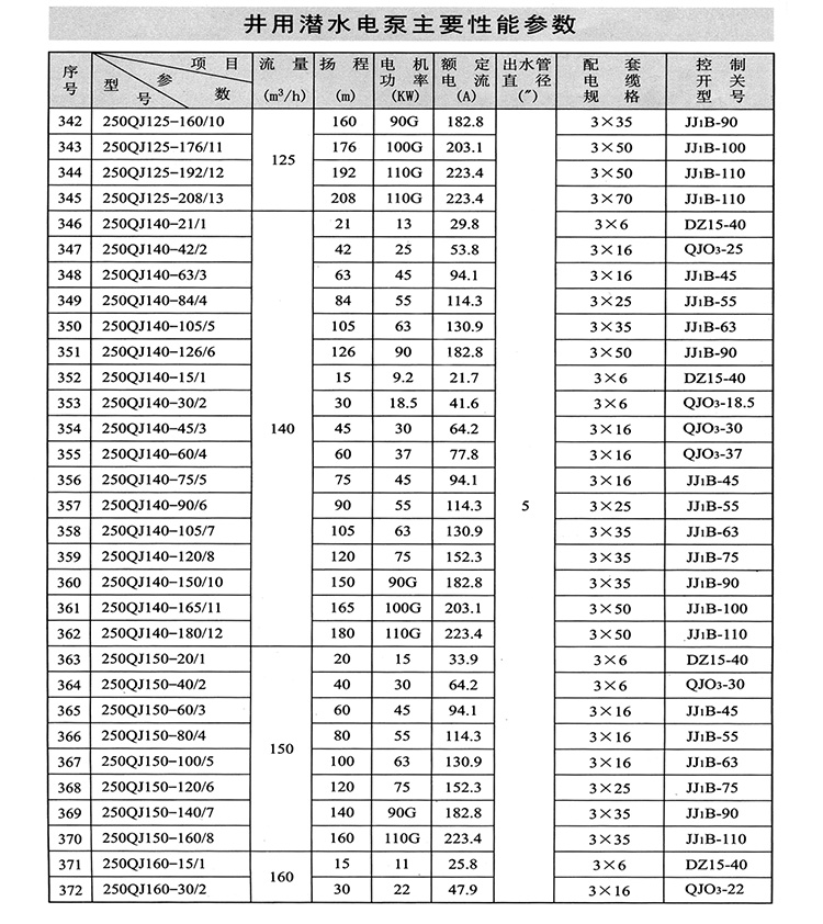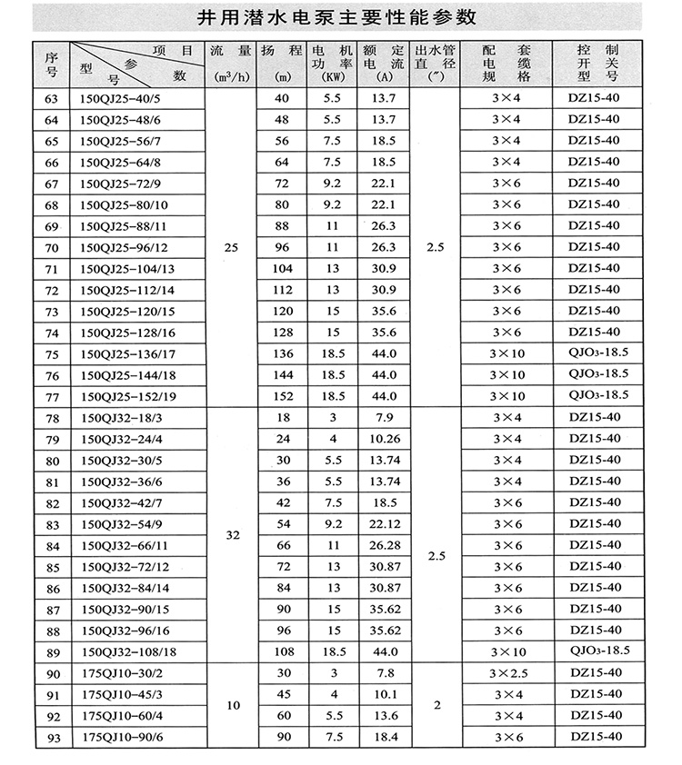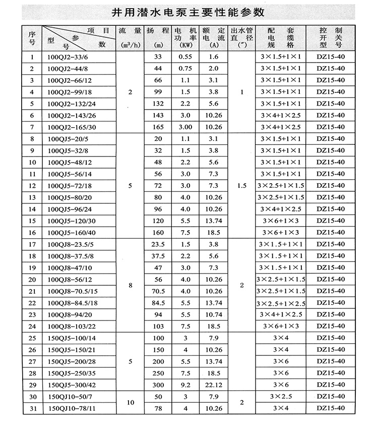 ZAQJ長軸深井泵、深井長軸泵性能參數