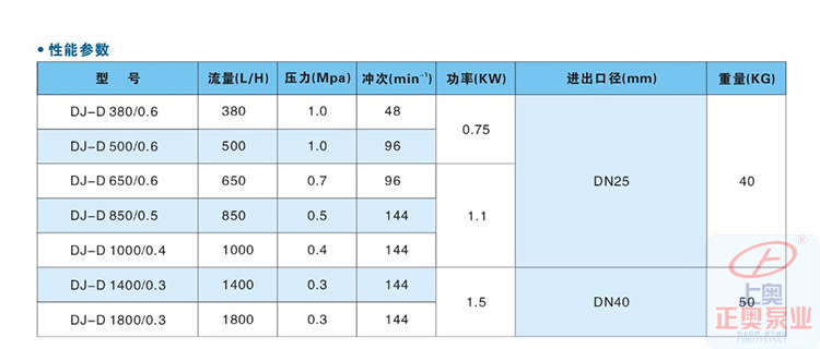 三、DJ-D型機械驅動隔膜式計量泵技術參數: