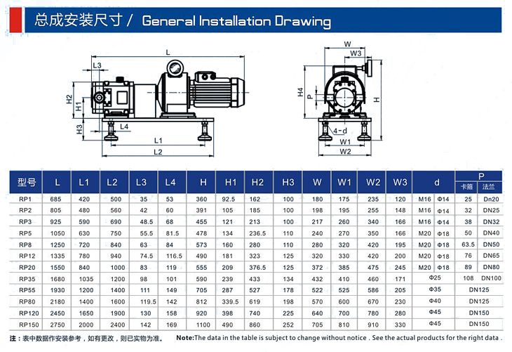 RP系列不銹鋼轉子泵的轉子與傳動齒輪分開,泵腔內各零配件之間保持一定的間隙,相互不接觸,無磨損,低噪音,可靠性好,使用壽命長,降耗。配置變頻器后,可以隨意調節流量,做一般計量泵使用?奢斔推、液、固等三相混合物料?梢暂斔偷慕橘|的粘度可高達1000000CP和含固量達55%的漿料。結構緊湊,相對螺桿泵占用空間小。