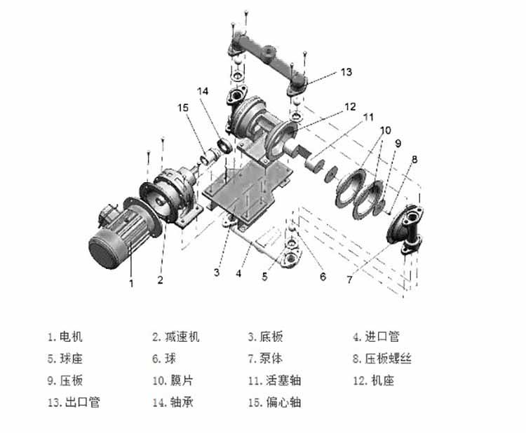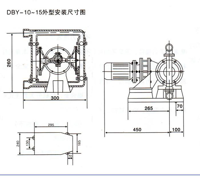 DBY系列電動隔膜泵是一種新型的泵類。本泵應用于石化、陶瓷、冶金等行業,這種泵的主要特點是不需灌引水。直徑在10毫米以下的顆粒、泥漿等均可以毫不費力地通過。由于隔膜將被輸送介質和傳動機械件分開,所以介質絕對不會向外泄漏,且泵本身無軸封,使用壽命大大延長。根據不同介質,隔膜分為氯醇橡膠、氟橡膠、丁晴橡膠等,完全可以滿足不同用戶的要求。