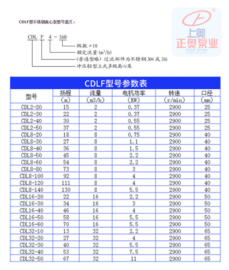 CDLF-16不銹鋼立式多級(jí)泵性能參數(shù)選型: