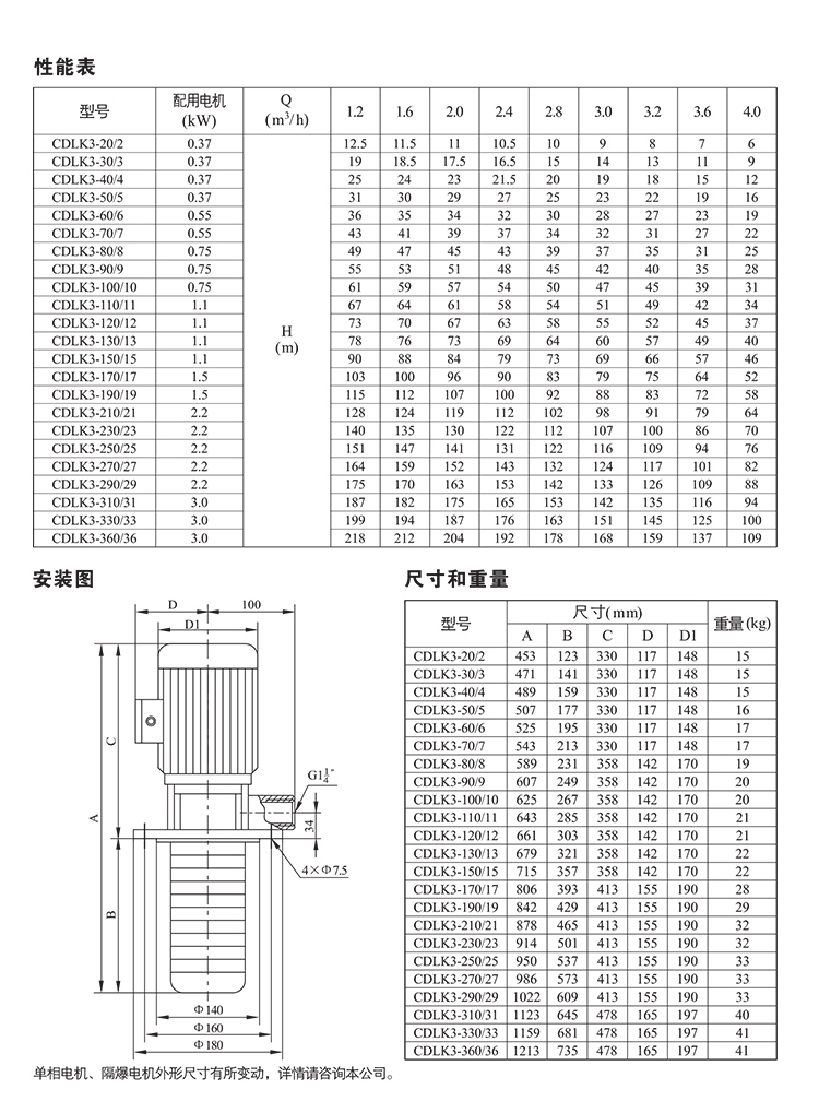 | CDLK8-180/18 | 167 | 8 | 7.5 | 2900 |